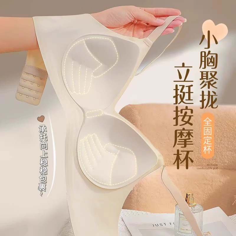 可外露美背细肩带内衣女聚拢隐形无痕一体式 背心文胸固定杯防下垂