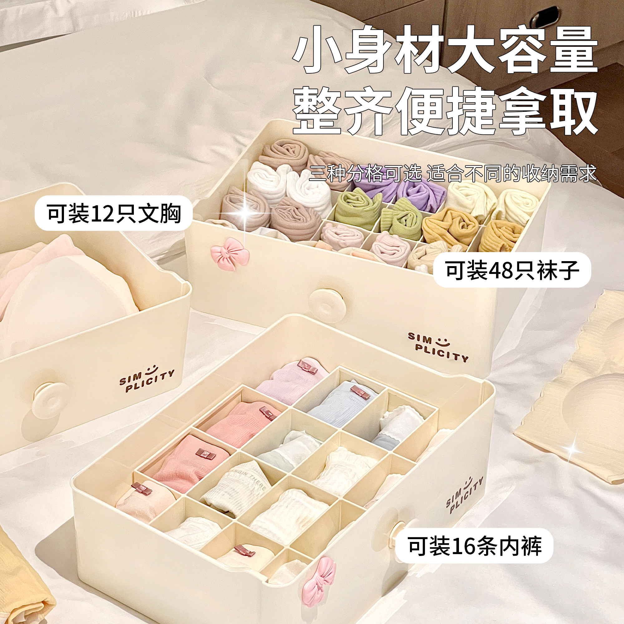 内衣内裤 收纳神器 收纳盒家用袜子分格整理盒三合一贴身衣物抽屉式