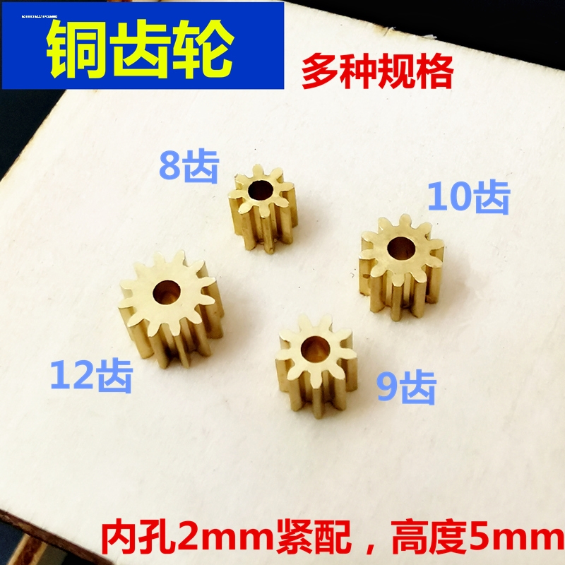 马达铜齿轮8齿9齿1012齿2毫米轴紧凑遥控车电机铜金属玩具小齿轮