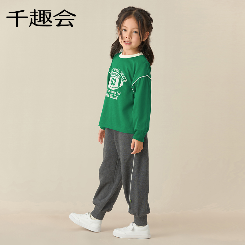 100%纯棉长袖 宽松遮肉显瘦套头外穿拼接薄卫衣E T恤上衣女秋冬韩版
