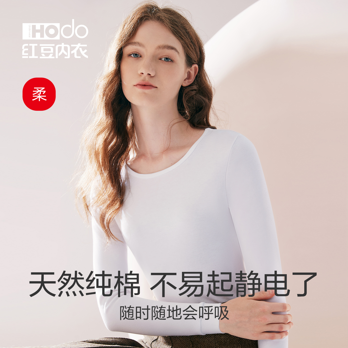 红豆女士秋衣纯棉秋冬打底棉毛衫 肌底衣贴身保暖内衣单件上衣 女款