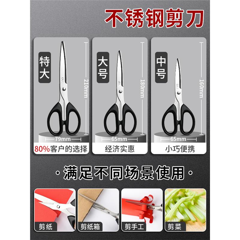 得力剪刀家用办公专用不锈钢多功能小号剪子儿童学生安全手工剪纸刀便捷式 厨房小剪刀裁缝专用裁剪美工刀中号