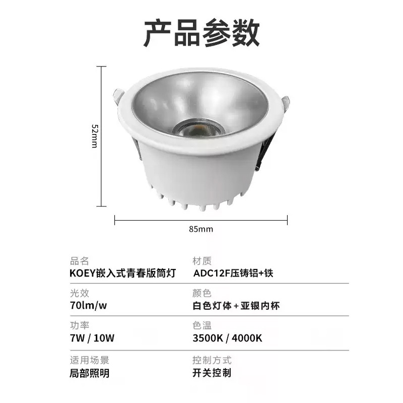 led筒灯嵌入式 75mm家用孔灯4寸6寸客厅天花板灯店铺商用射灯开孔