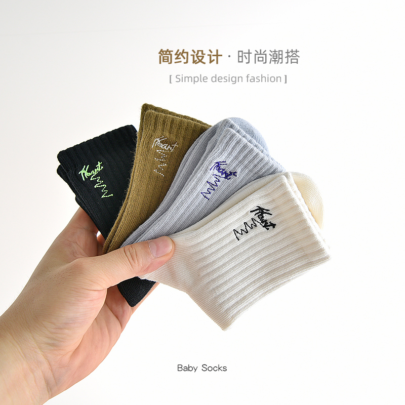 2024春秋冬儿童袜简约宝宝潮袜学生中筒棉袜男童无骨袜子长袜潮牌