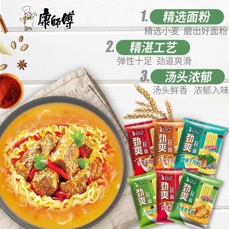康师傅劲爽拉面24袋装 泡椒酸菜红烧牛肉面速食泡面整箱批发方便面