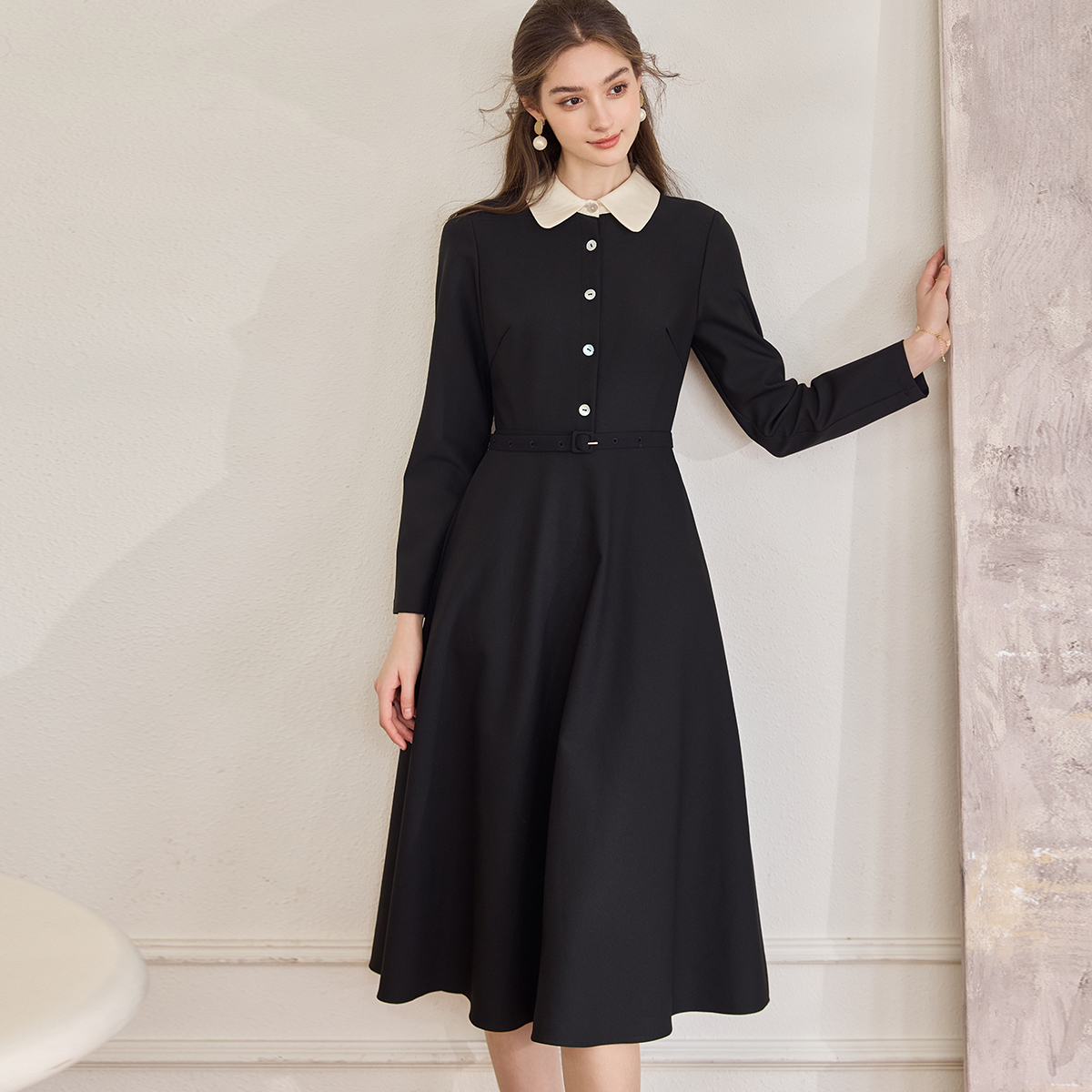 气质通勤黑色中长裙10963 新款 罗衣法式 赫本风大摆连衣裙2025秋季