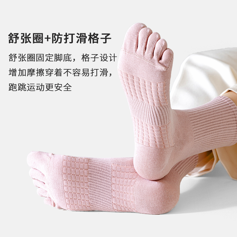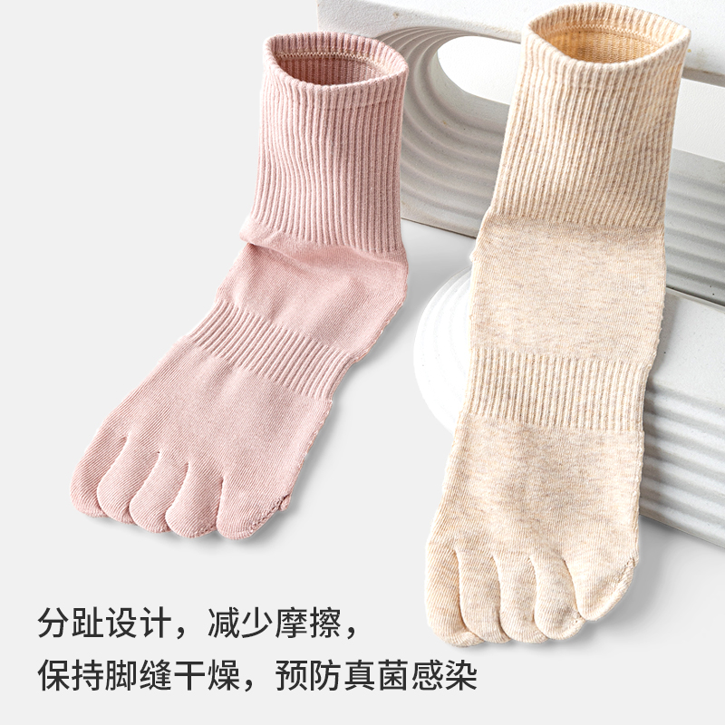 五指袜子女士中筒袜纯棉防臭吸汗抗菌春秋季 长袜全棉无骨分趾 薄款