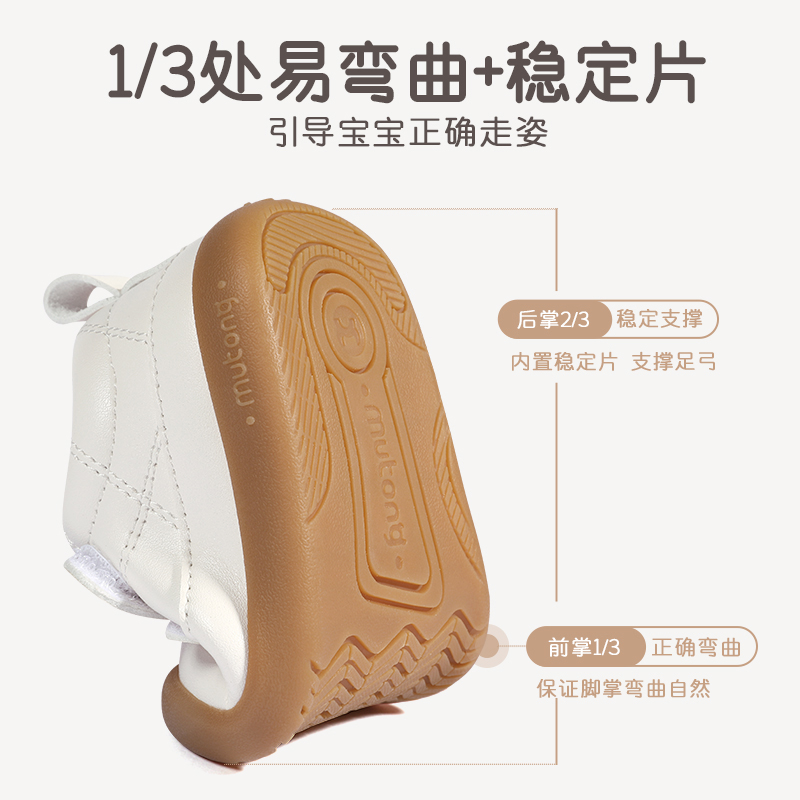 小白鞋 婴儿软底童鞋 女童革面简约男童 2025秋冬新款 牧童宝宝学步鞋