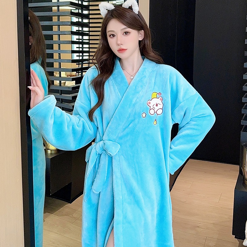 睡衣外穿浴袍 春秋法兰绒新款 和服睡袍女秋冬季 加厚珊瑚绒保暖长袖
