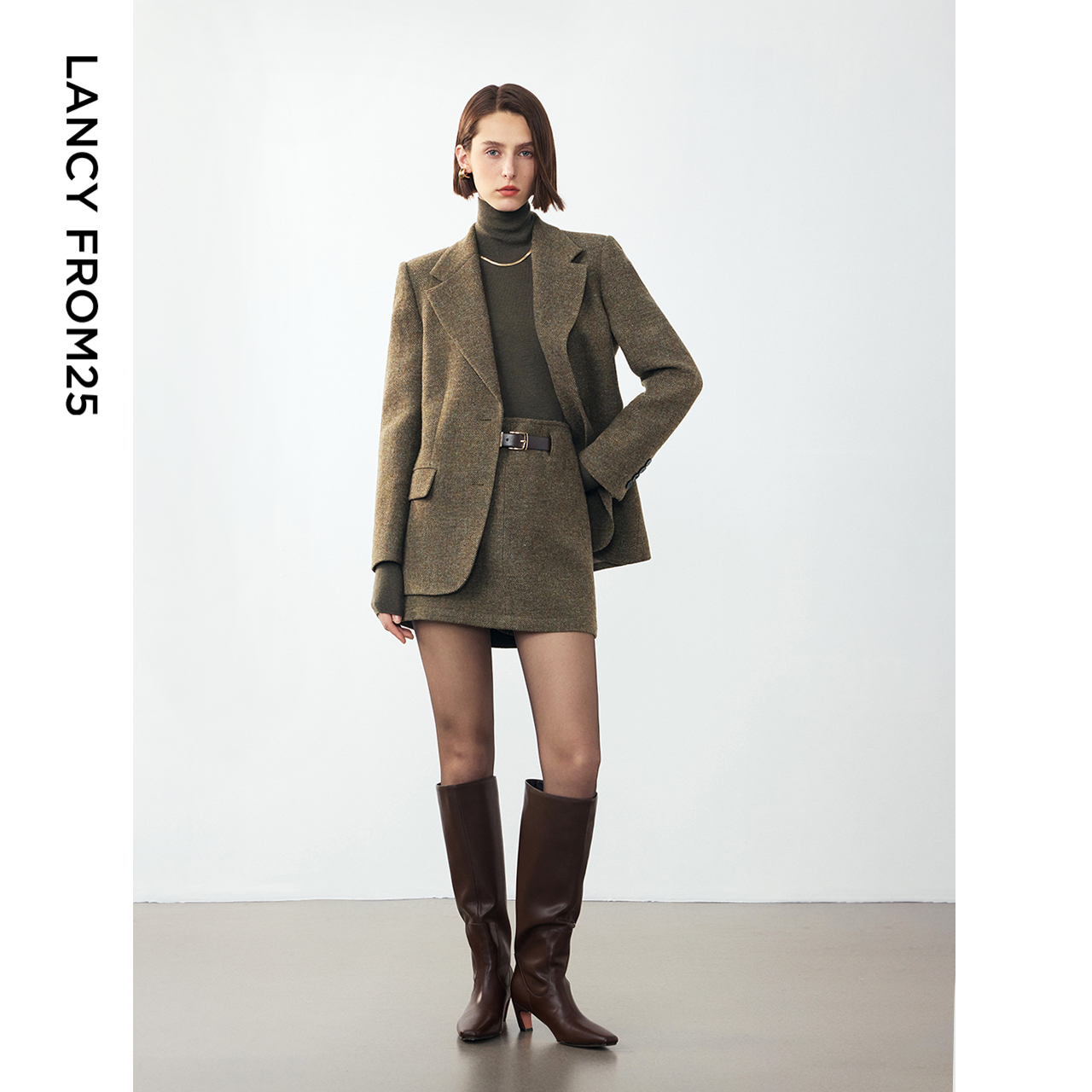 洋气气质西装 女2025新款 外套连衣裙两件套 咖色小香风毛呢套装 时尚