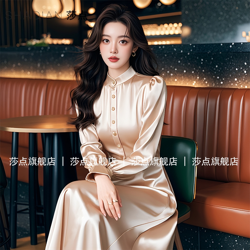 复古缎面连衣裙 收腰显瘦法式 温柔风裙子高级感2025年新款 春秋女装