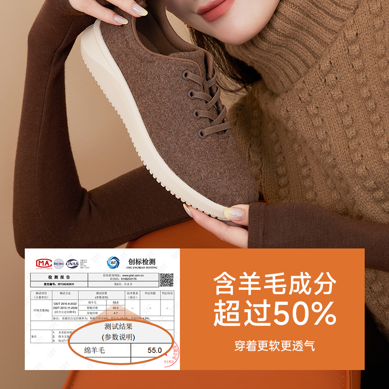 Pansy盼喜日本女鞋 轻便舒适软底一脚蹬透气保暖毛呢休闲鞋