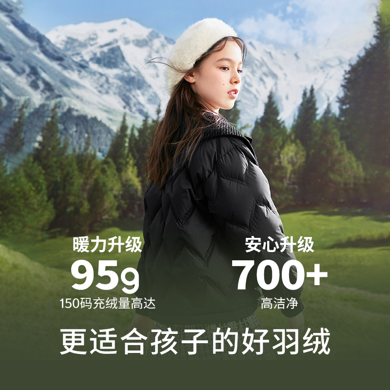 森马羽绒服女质感纯色简约保暖冬季 oversize连帽外套休闲 2024新款