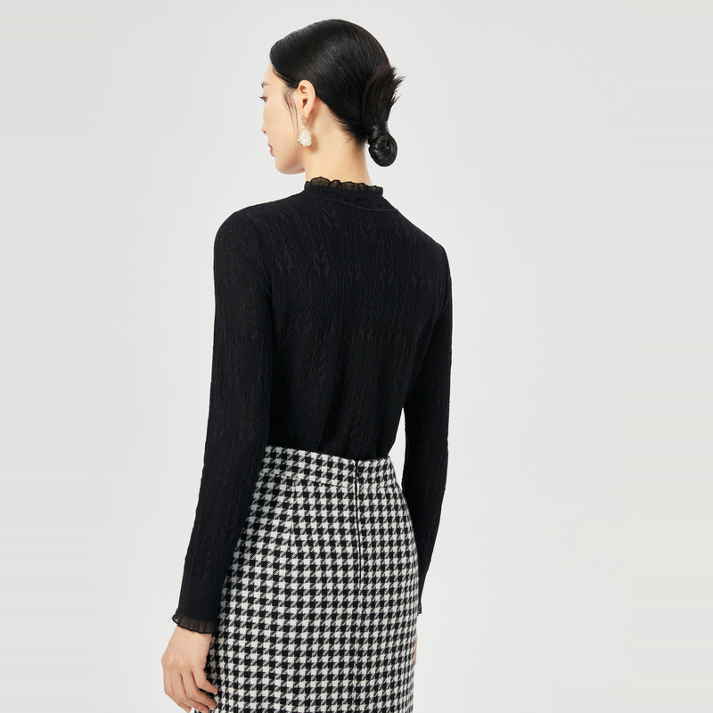 秋冬羊毛黑色内搭修身 2025新款 毛衣上衣 女半高领打底衫 猫人针织衫