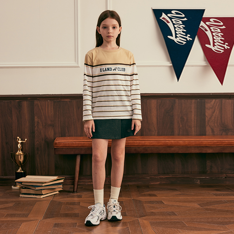 男女童T恤春秋季 kids衣恋童装 eland 印花条纹圆领长袖 100%棉