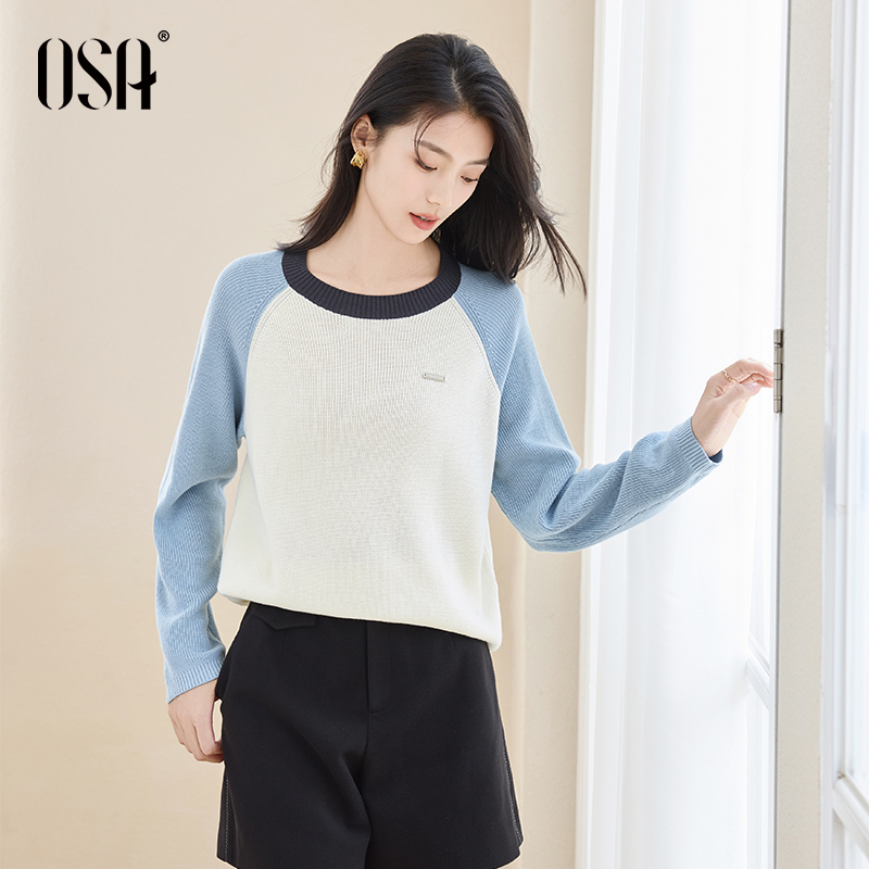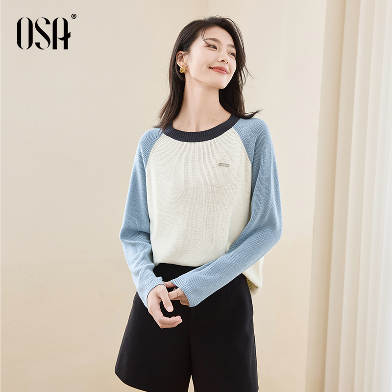 新款 宽松休闲毛衣女上衣2025秋季 撞色慵懒穿搭针织衫 OSA欧莎美式