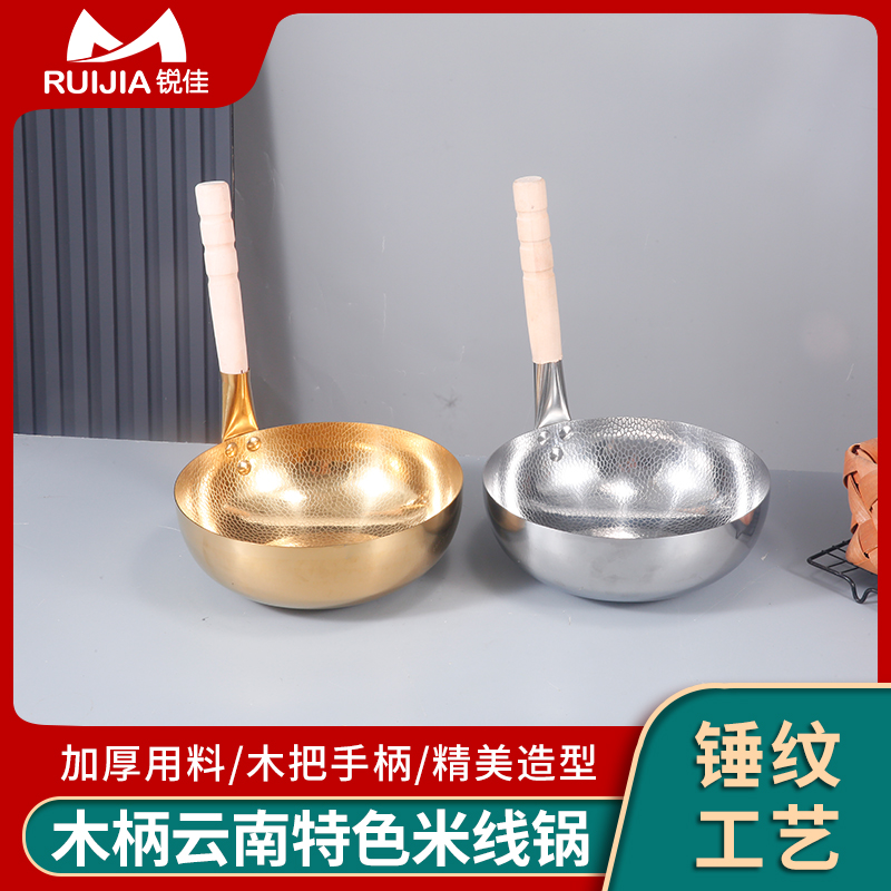 仿铜锅煮米线锅手工加厚云南特色木柄小锅燃气灶专用锅米粉锅汤锅