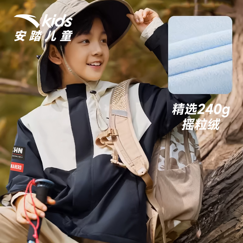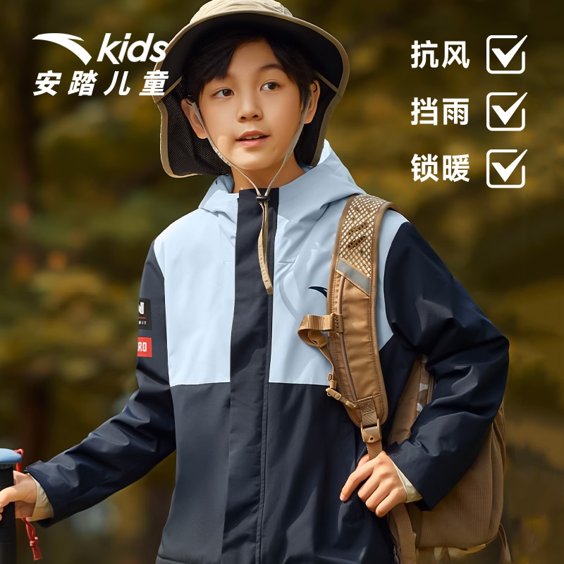 安踏儿童梭织运动外套2025秋季 户外撞色连帽轻薄防风衣 新款