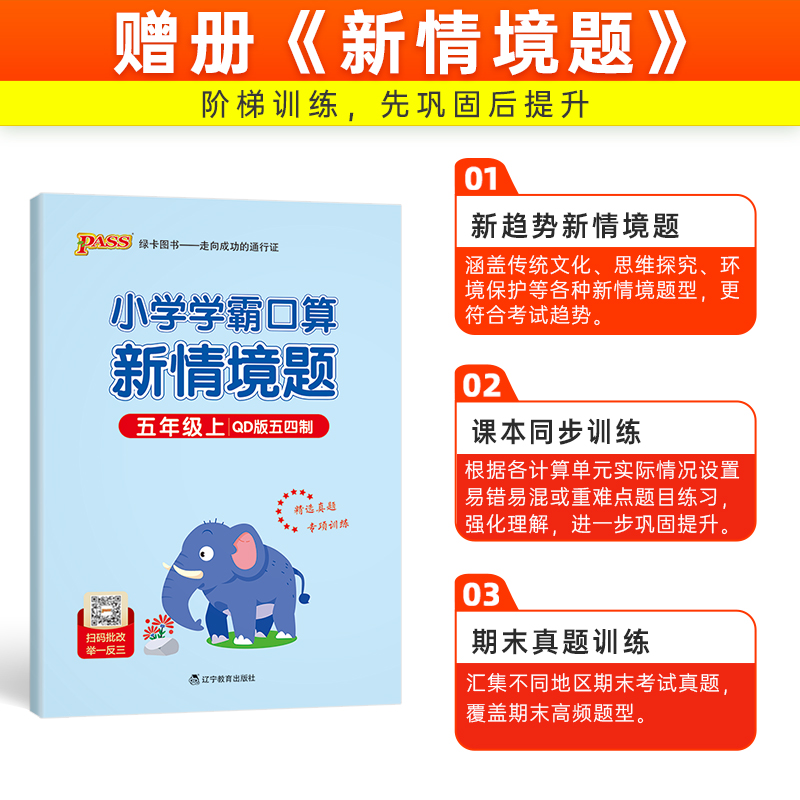 青岛版 口算题专项教材同步计算练习应用题通关训练pass绿卡 五四制学霸口算一二三四五六年级上册数学青岛54六三学霸默写语文人教版