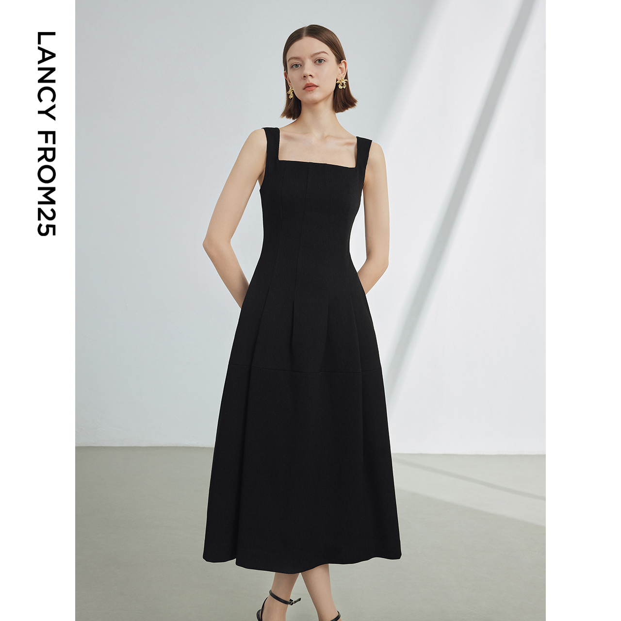 黑色赫本风 收腰显瘦长款 太平鸟小黑裙无袖 气质吊带连衣裙子夏款