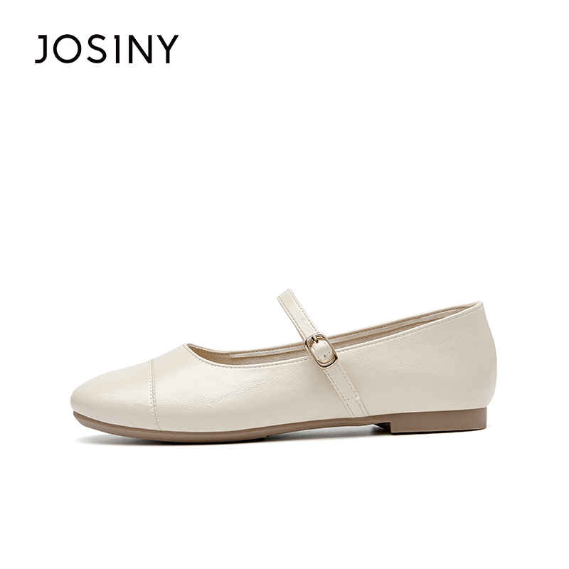 子E1V1DCQ5 蛋卷平底浅口单鞋 百丽小金豆羊皮芭蕾玛丽珍鞋 女新款