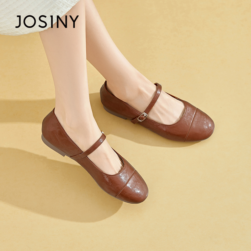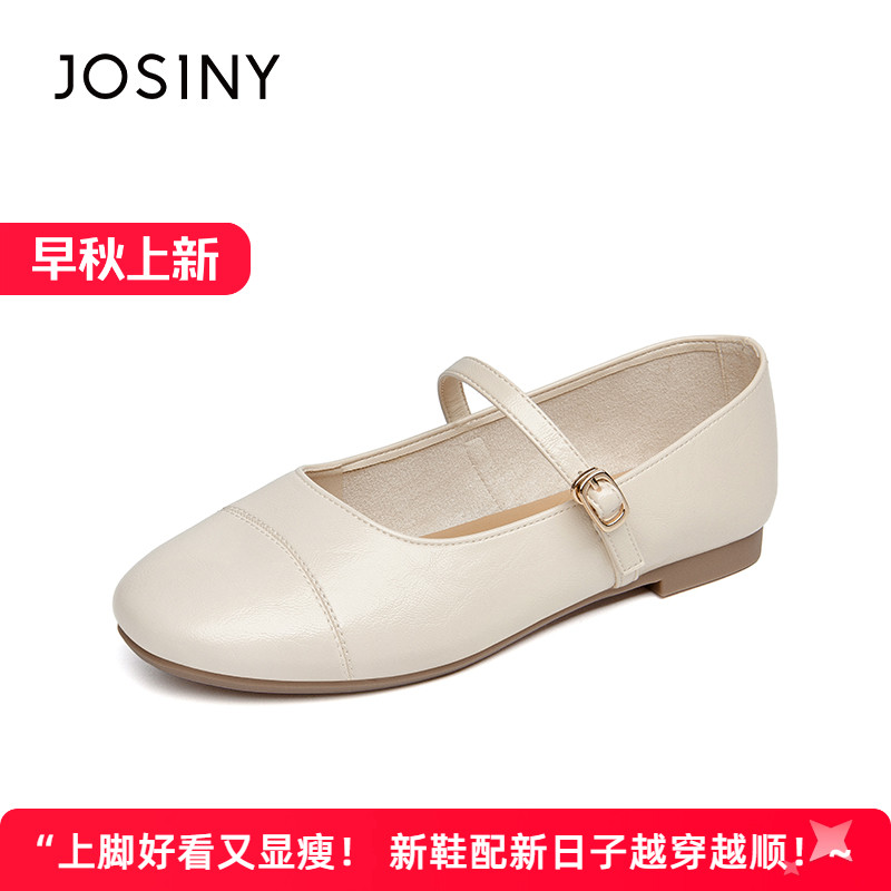 羊皮玛丽珍浅口女红色单鞋 百思图莫奈花园25秋新款 叶一茜同款