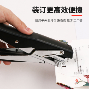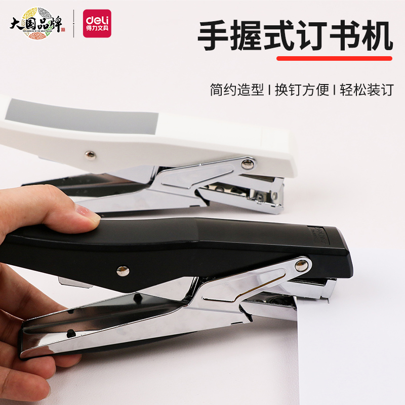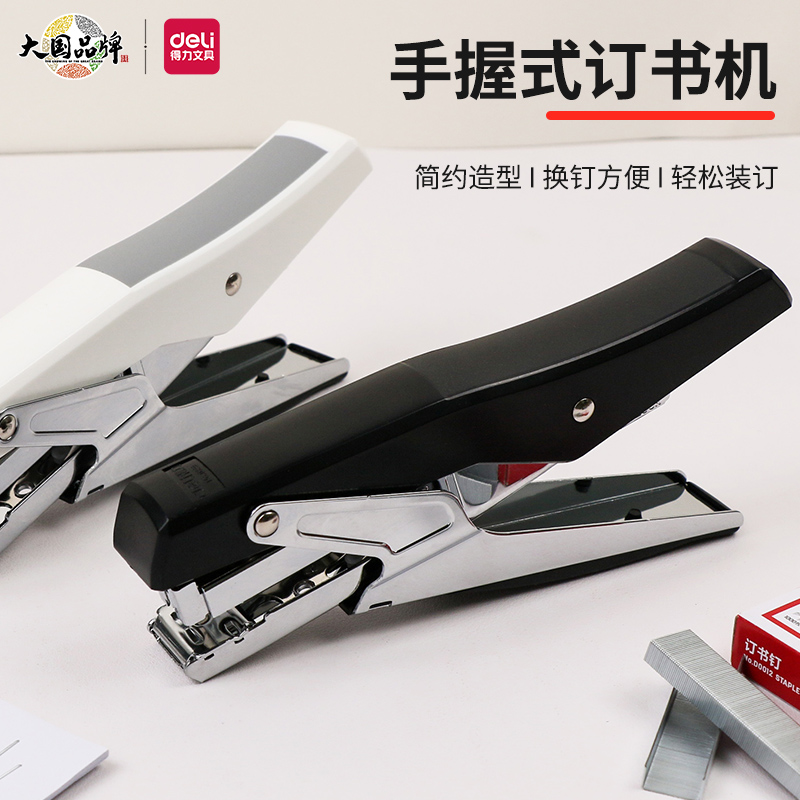 得力手握式 订机办公用品神器 订书机外卖打包专用订单商用钉书机外卖单订书器订书钉小号手持省力通用大号装