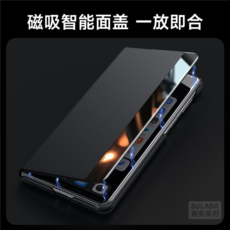 适用于三星Galaxy Fold6手机壳视窗皮套前后吸磁w25全包无线充磁圈fold4凯肤拉纹保护套fold5商务高档皮料