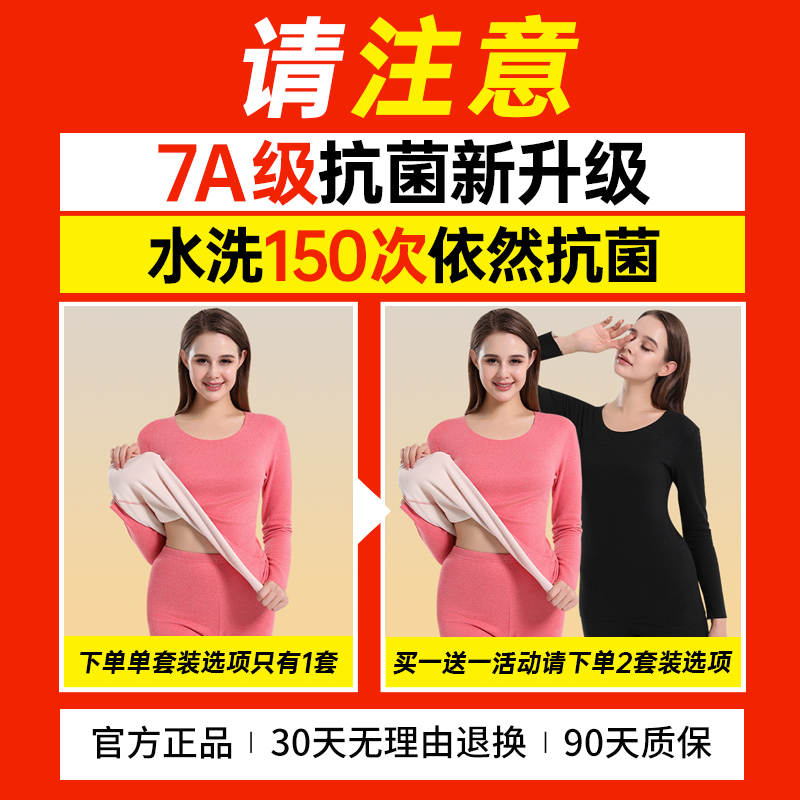秋衣秋裤 打底衫 贴身 无痕发热加厚加绒德冬季 雅鹿保暖内衣女士套装