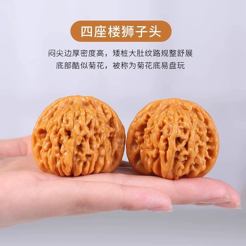 精品文玩核桃狮子头四座楼把玩手把件官帽血麒麟纹古玩盘玩手串男