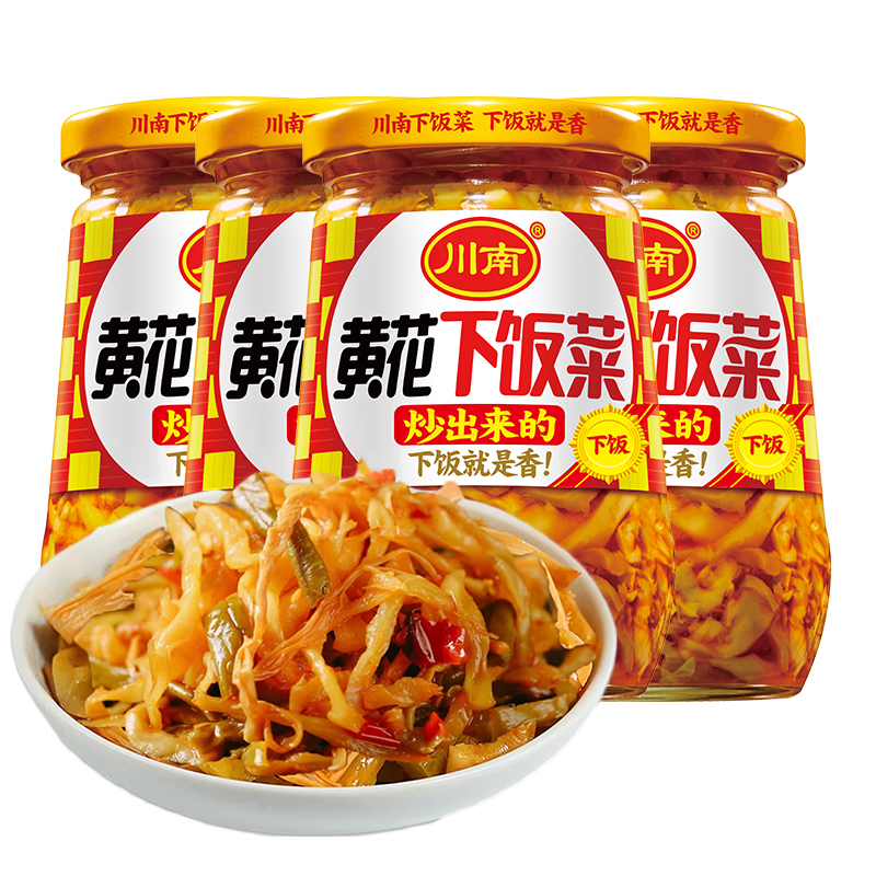 川南爽口下饭菜豇豆黄花235g早餐酸豆角菜开味榨菜335g 4瓶装