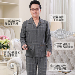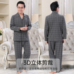 家居服套装 长袖 柔软春秋透气阳光棉睡衣男女 开衫 松山棉店棉柔男士