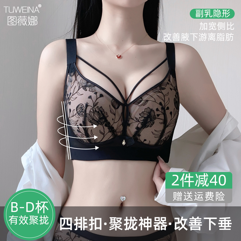 图薇娜调整型文胸女大胸显小胸内衣网红薄款 聚拢收副乳防下垂胸罩