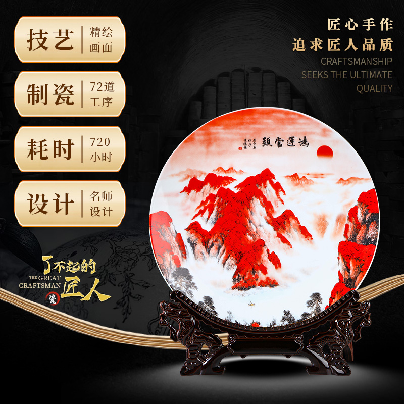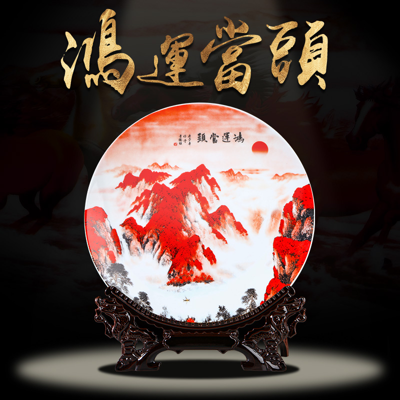 景德镇陶瓷器鸿运当头挂盘装 家居客厅酒柜玄关坐盘摆件 饰盘子中式