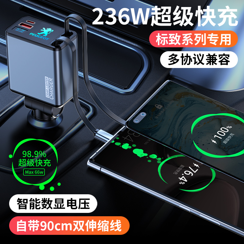 车载充电器伸缩线超级快充2025新款 一拖二点烟器120w适用华为小米