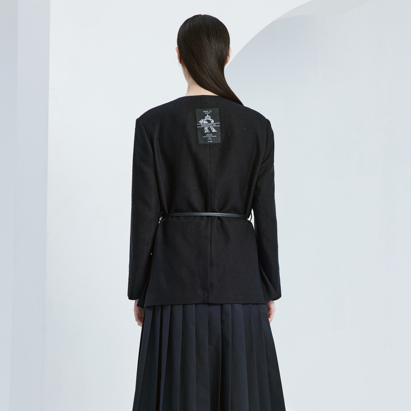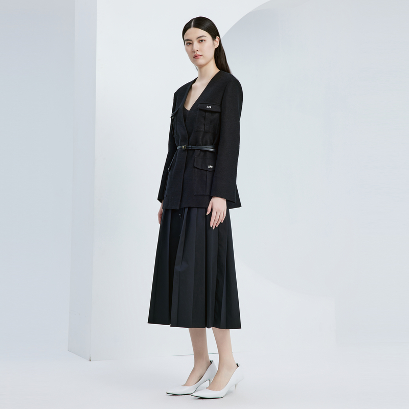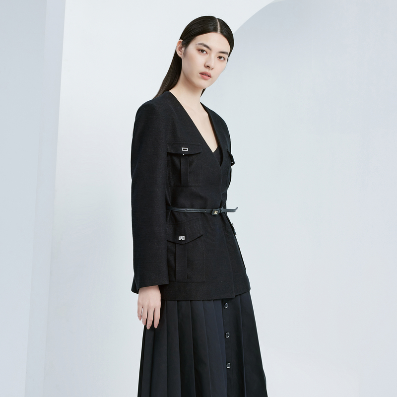新款 XG雪歌翻袋设计长袖 秋季 时尚 黑色通勤简约V领外套女 休闲西装