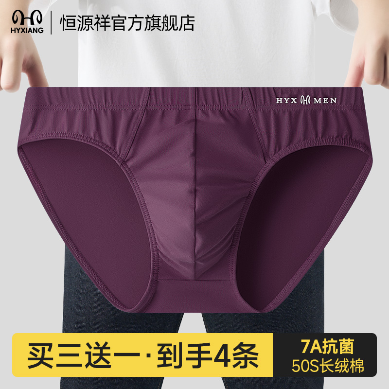 宽松裤 恒源祥男士 抑菌纯棉透气大码 男生蚕丝亲肤薄款 衩子 三角内裤