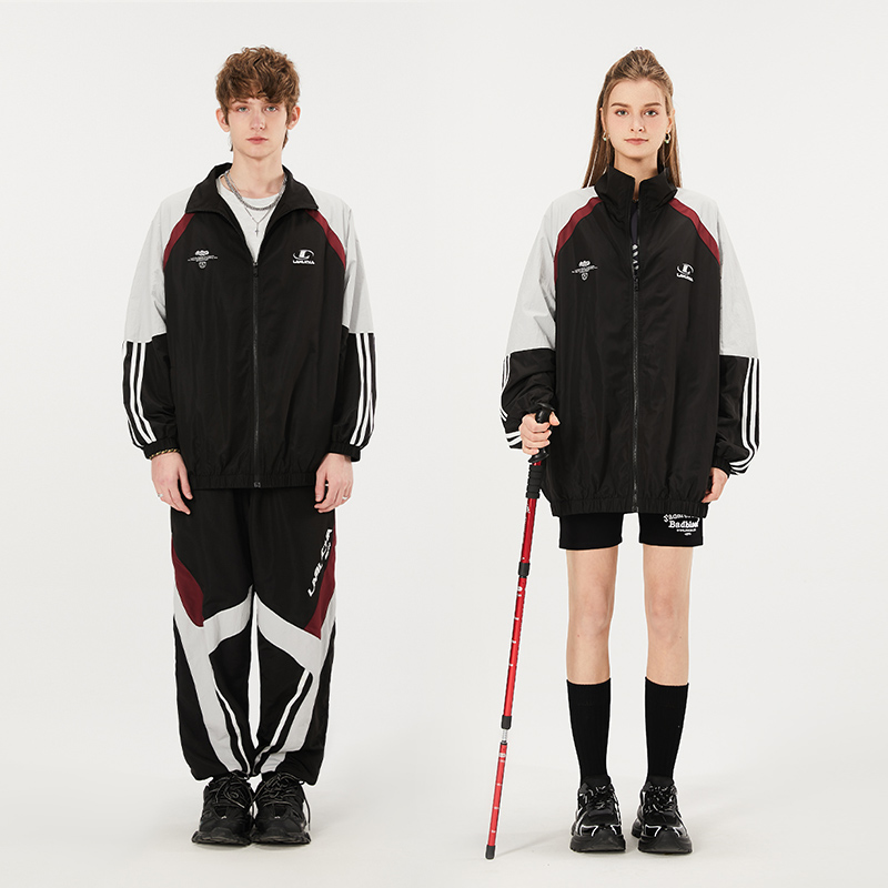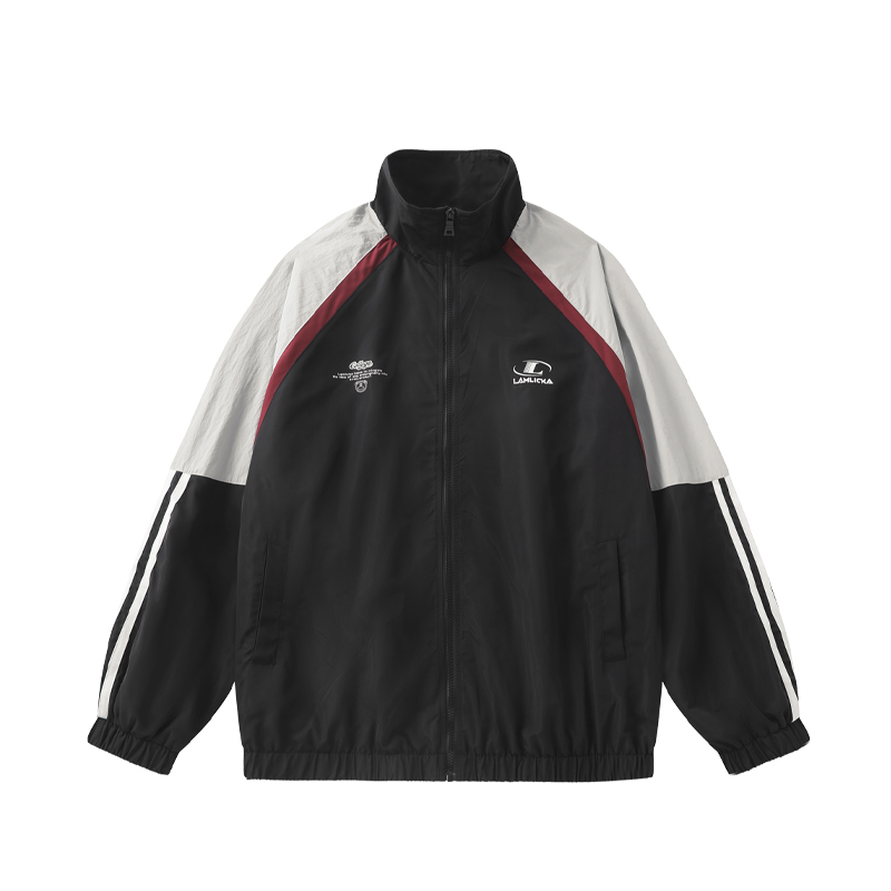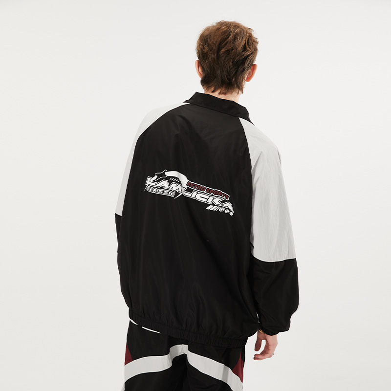 LAMLICKA美式 拼接撞色潮流印花拉链外套宽松 复古运动夹克男秋冬款