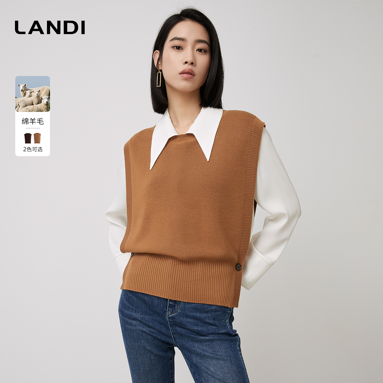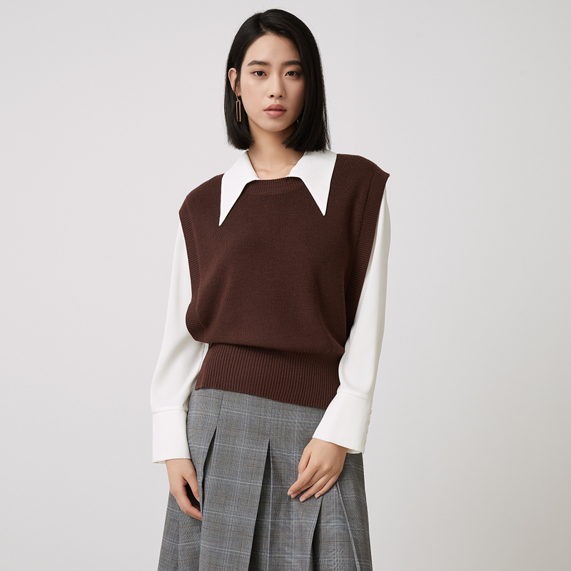 显瘦中领针织衫 半高领无袖 内搭坎肩修身 灰色西装 背心女羊毛打底衫
