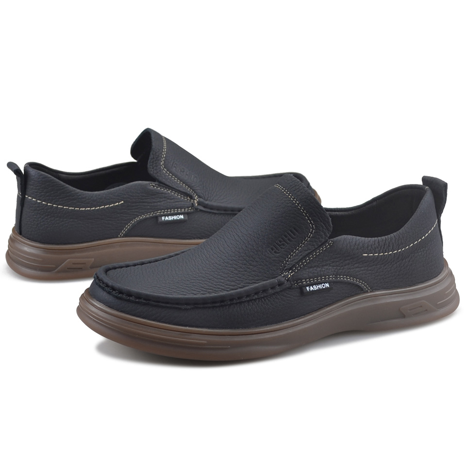 男真皮秋季 透气厚底商务休闲皮鞋 中老年爸爸鞋 男鞋 大码 老人头皮鞋