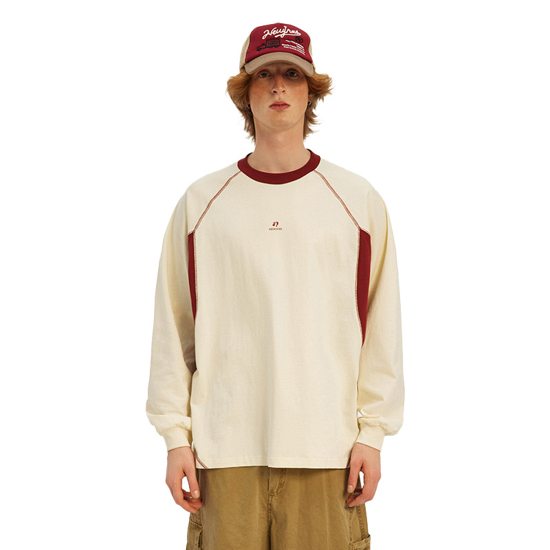 T恤男女秋潮牌宽松打底衫 长袖 拼接印花长短款 江南先生NewJNXS美式