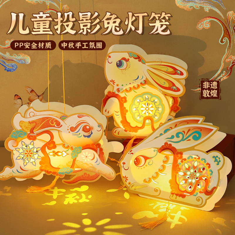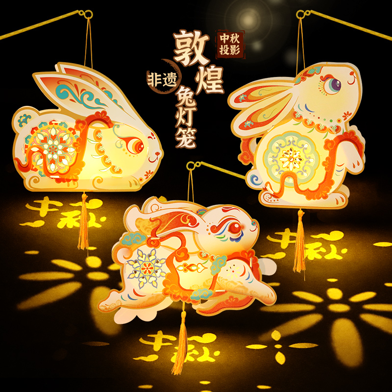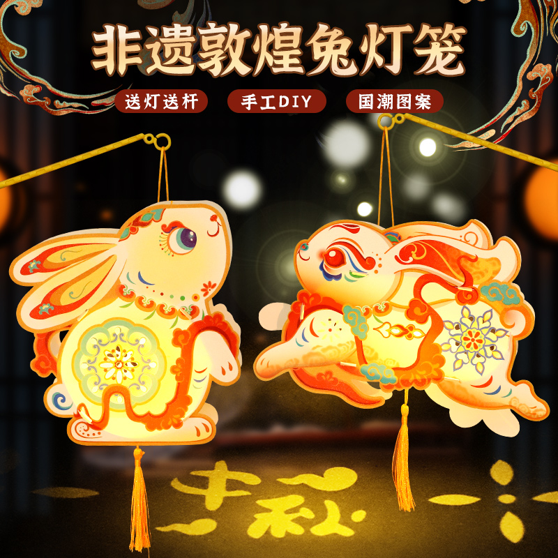 中秋节手工敦煌兔子灯笼diy材料儿童幼儿园手提发光古风非遗花灯
