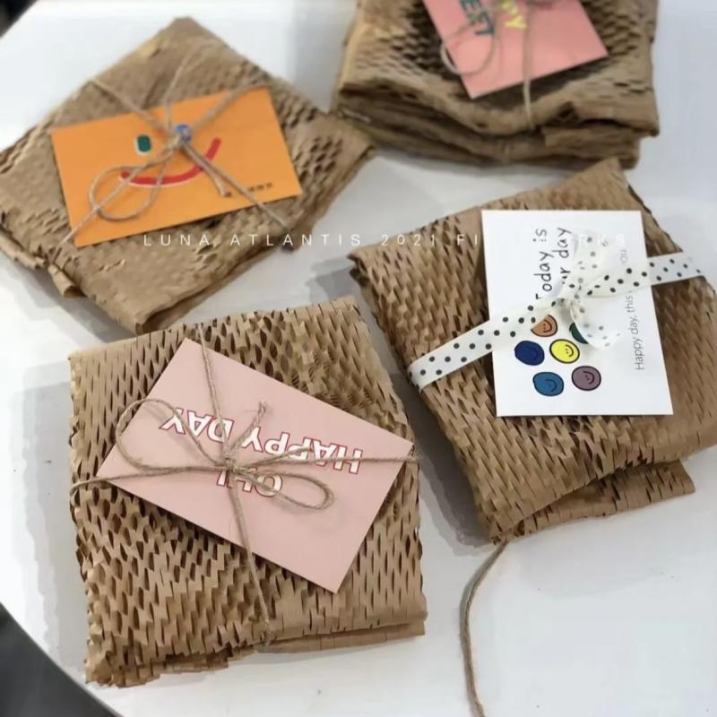 出卡打包蜂窝纸包装 纸花束鲜花包花纸网眼网纹内衬礼物纸花艺材料礼盒礼物缓冲网格纸蜂巢拉网艺术纸丝带英文