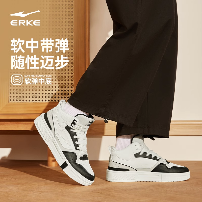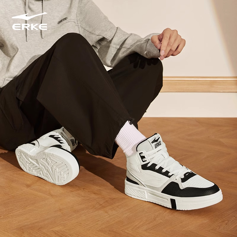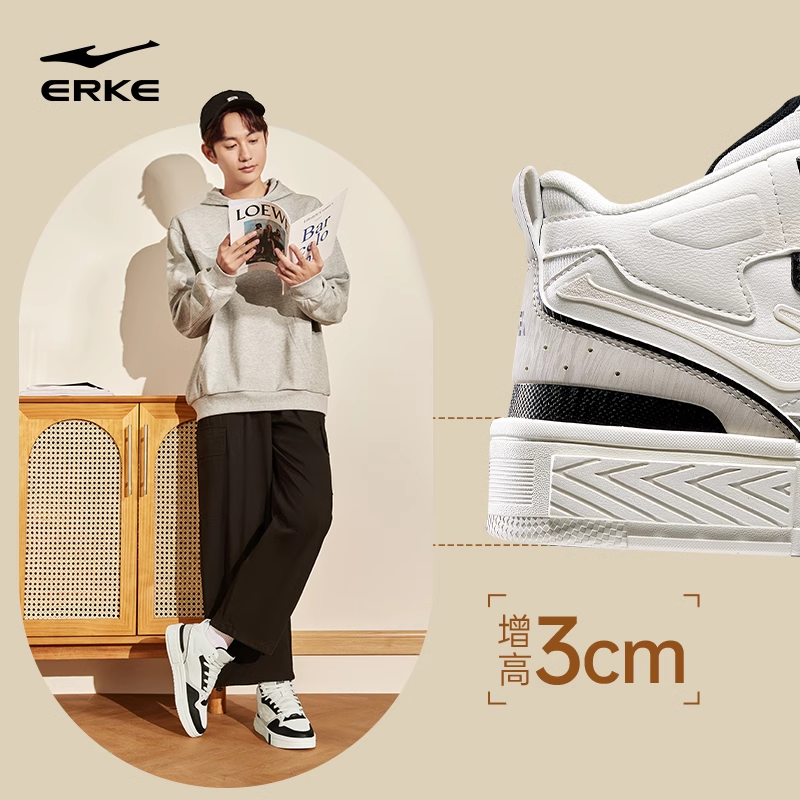 皮面防水鞋 征服鸿星尔克板鞋 高帮加棉鞋 加绒保暖男鞋 子 秋冬运动鞋