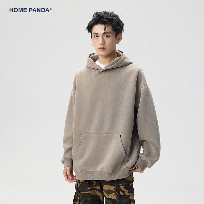套头上衣 潮牌纯色情侣装 HomePanda重磅水洗连帽卫衣男春秋款 美式