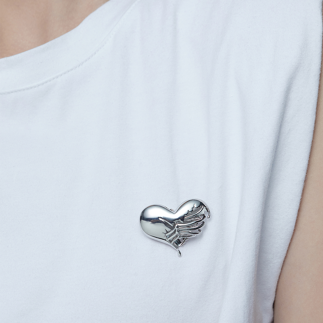 MW野月亮原创设计高级感气质个性 小众创意爱心骨骼胸针项链两用