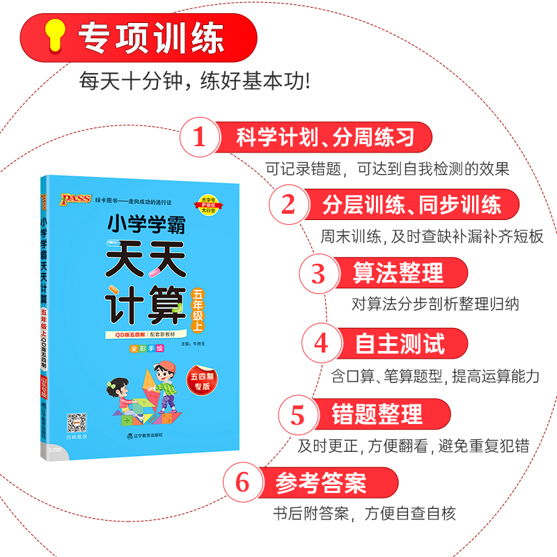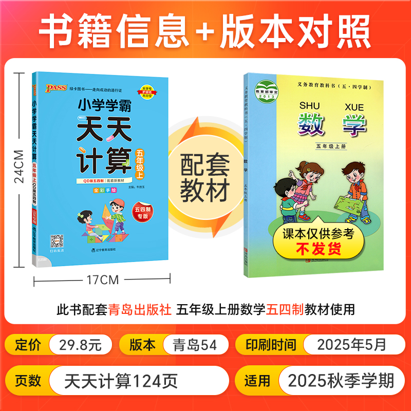 青岛版 五四制2025小学数学学霸天天计算五年级上册下册同步专项思维训练口算题卡练习册pass绿卡图书计算能手随堂习题天天练小达人