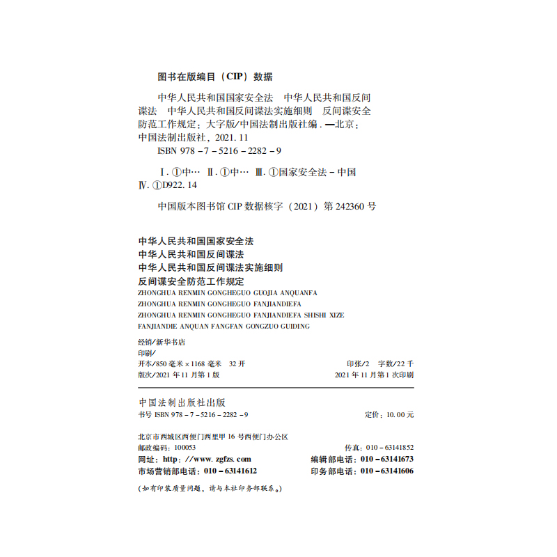 中华人民共和国国家安全法 反间谍法 中国法制出版 2024年版 社 大字版 适用 反间谍安全防范工作规定 正版 反间谍法实施细则