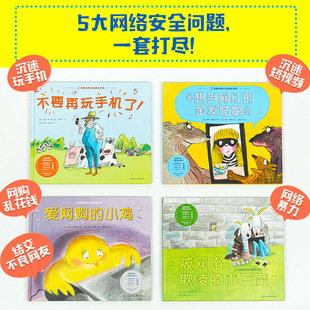 如果动物们也爱玩手机全套4册给孩子 大书 上网安全绘本3 6岁宝宝网络安全知识启蒙自我保护意识培养图画故事书籍 16开精装