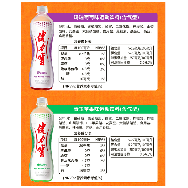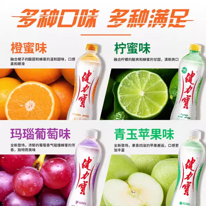 健力宝运动型饮料560ml 15瓶橙味汽水饮料怀旧碳酸饮品苹果葡萄味